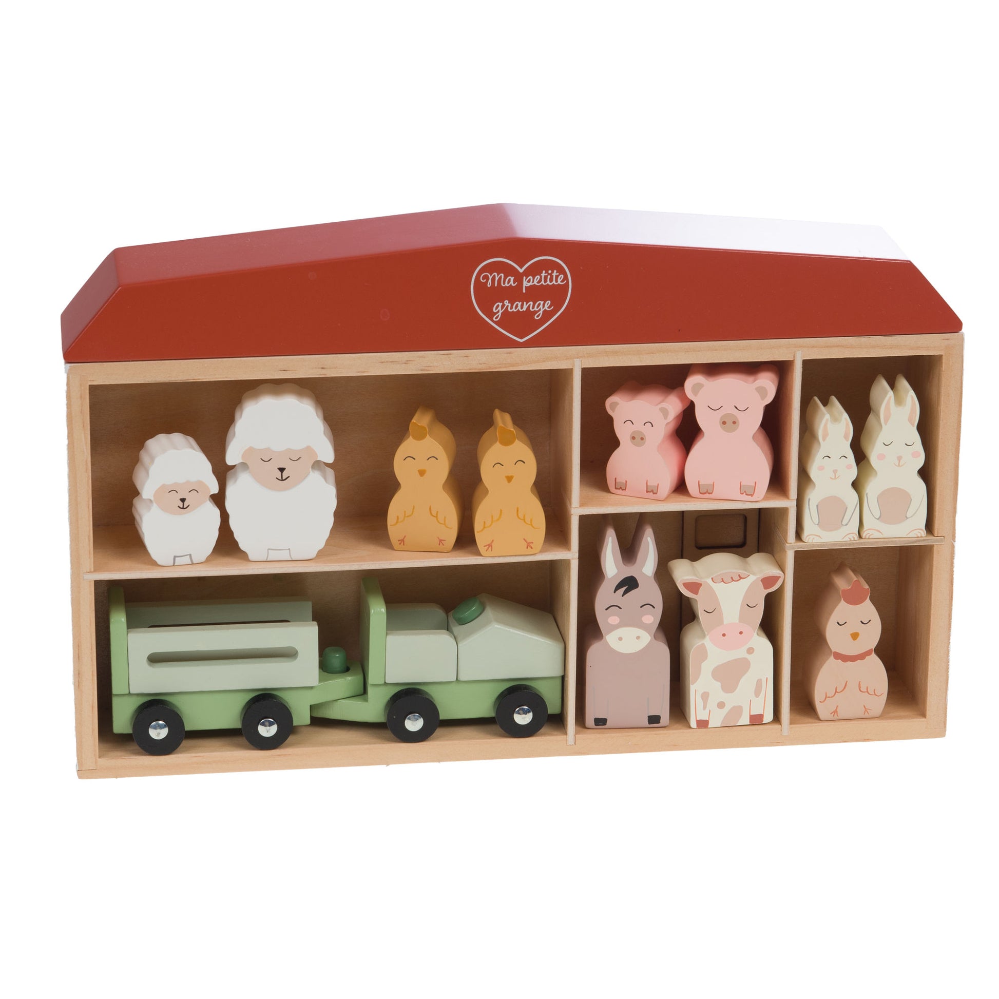Offrez à votre enfant un univers de jeu tendre et créatif avec "Ma Petite Grange + Animaux". Cette petite ferme en bois coloré invite à découvrir les animaux dans un décor charmant et chaleureux. Facile à manipuler, elle stimule l'imagination et apporte une touche douce et naturelle à la chambre ou à l'aire de jeu.